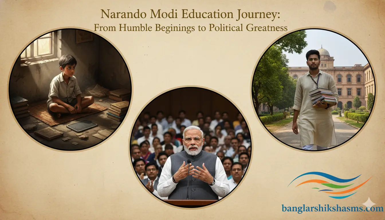 Welcome to banglar shiksha sms. Narendra Modi is one of the most influential political leaders in modern Indian history. His remarkable journey from a small town in Gujarat to the position of Prime Minister of India demonstrates the power of determination, hard work, and continuous learning. Understanding the Narendra Modi education journey offers insight into how his early academic experiences, combined with personal discipline and political engagement, shaped his leadership style and vision for the country. From his primary schooling in Vadnagar to earning advanced degrees through perseverance, Modi’s educational path reflects resilience, dedication, and a lifelong commitment to learning.